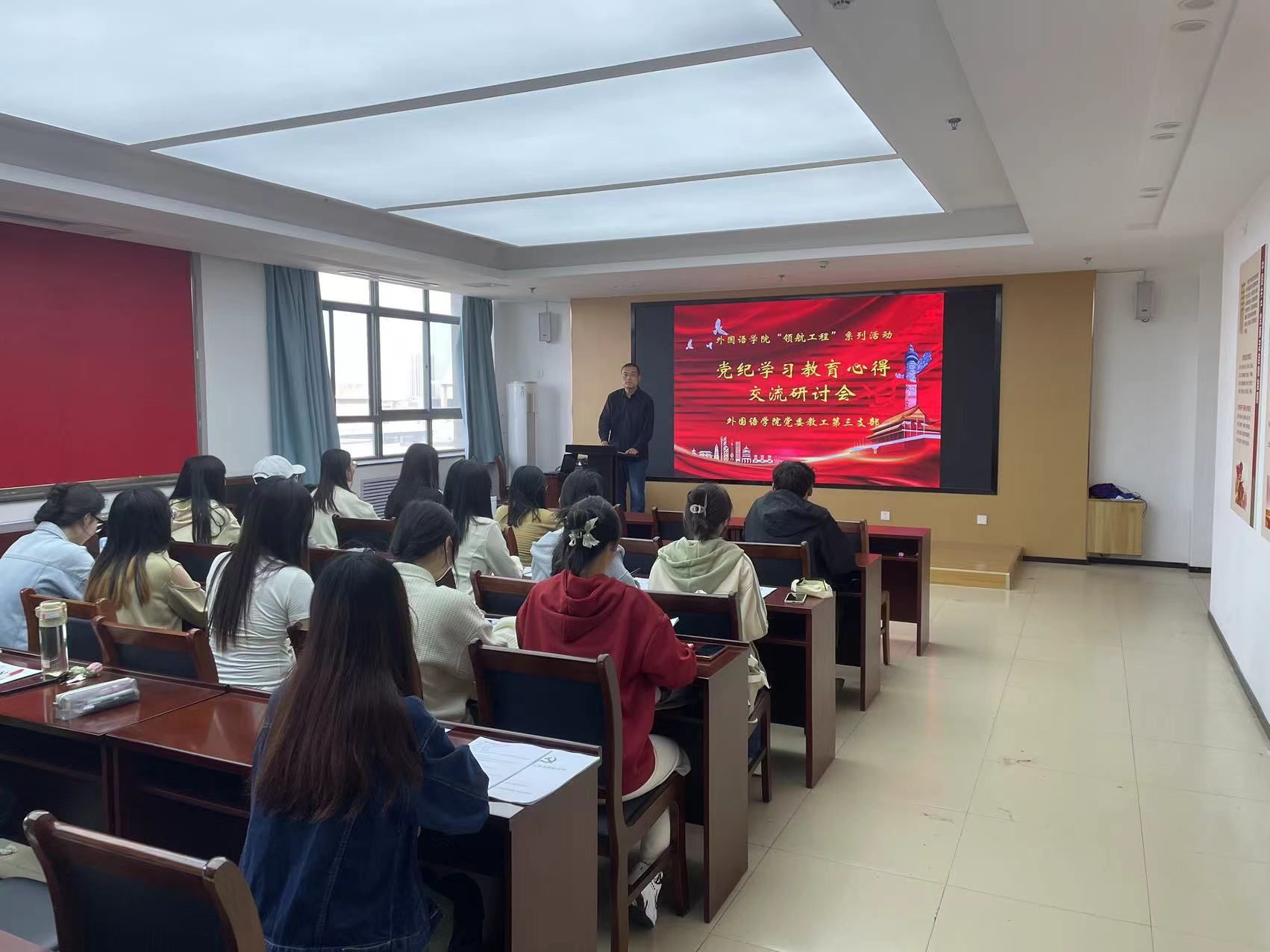 4月19日,公司教工三支部组织开展题为《党纪学习教育心得交流研讨会》的领航工程活动,与对接班级共同学习《中国共产党纪律处分条例》。在交流发言中,员工党员房效宇认为思想是行动的指南,开展好党纪学习教育,必须坚持以习近平新时代中国特色社会主义思想为指导;员工党员刘春燕认为要把开展党纪学习教育同落实中央重大决策部署结合起来,在学习中切实把自己摆进去,使党纪学习教育每项措施都成为促进工作和学习的有效举措。