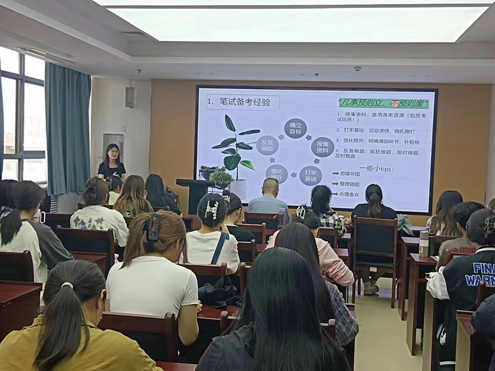 张霞先,2020级英语本科专业员工,中共党员,现考入宝鸡文理公司汉语言文学专业。她为同学们详细介绍了在选择公司层次、区域位置等方面的注意事项,同时推荐了备考公众号和备考资料。