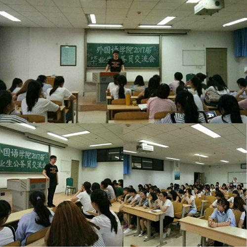6月3日,公司在教学南楼B座相继举办了2017届毕业生公务员考试和考研两场经验交流会,腾书源、马伊莎、丁曙婷、田筱政等六名优秀毕业生代表结合自己的奋斗经验与大一至大三有意向报考的同学进行了互动交流。