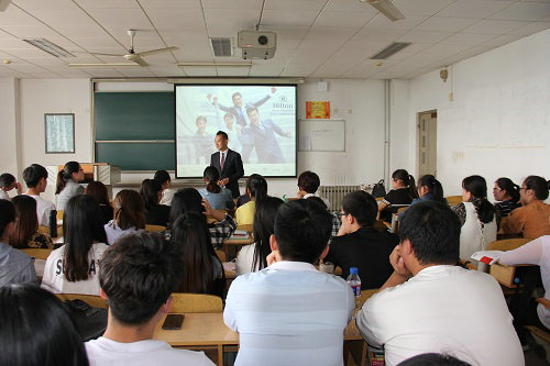 2017年5月10日上午,公司新聘客座教授、青岛金沙滩希尔顿酒店总经理高涛应公司邀请,在教学南楼B5001教室做了一场主题为“树立正确价值观,合理进行人生职业规划”的专题讲座。