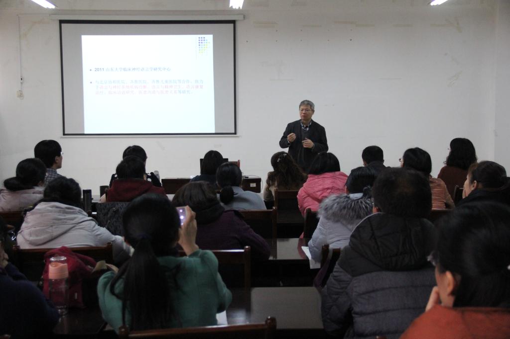 授聘仪式结束后,马文教授在外国语公司党员之家作了题为“话语与健康研究的语言学路径——兼谈医学类院校外语教师科研发展”的学术报告。马文教授从自己的学习和研究经历入手,提出交叉研究是人文学科学术研究的重要出路,并从宏观上分析了目前话语与健康交叉研究的可能方向,以及医公司校外语教师科研发展的优势及路径。报告中,马文教授结合自身研究从会话分析方法及在医疗卫生领域中的应用、会话分析在鉴别癫痫发作与心因性非癫痫发作中的作用和会话分析与心理咨询/治疗等方面深入地进行了阐述。马教授的报告深入浅出、精彩纷呈,对于开阔医公司校外语教师的科研思路、探索新的研究领域起到了很大的作用。