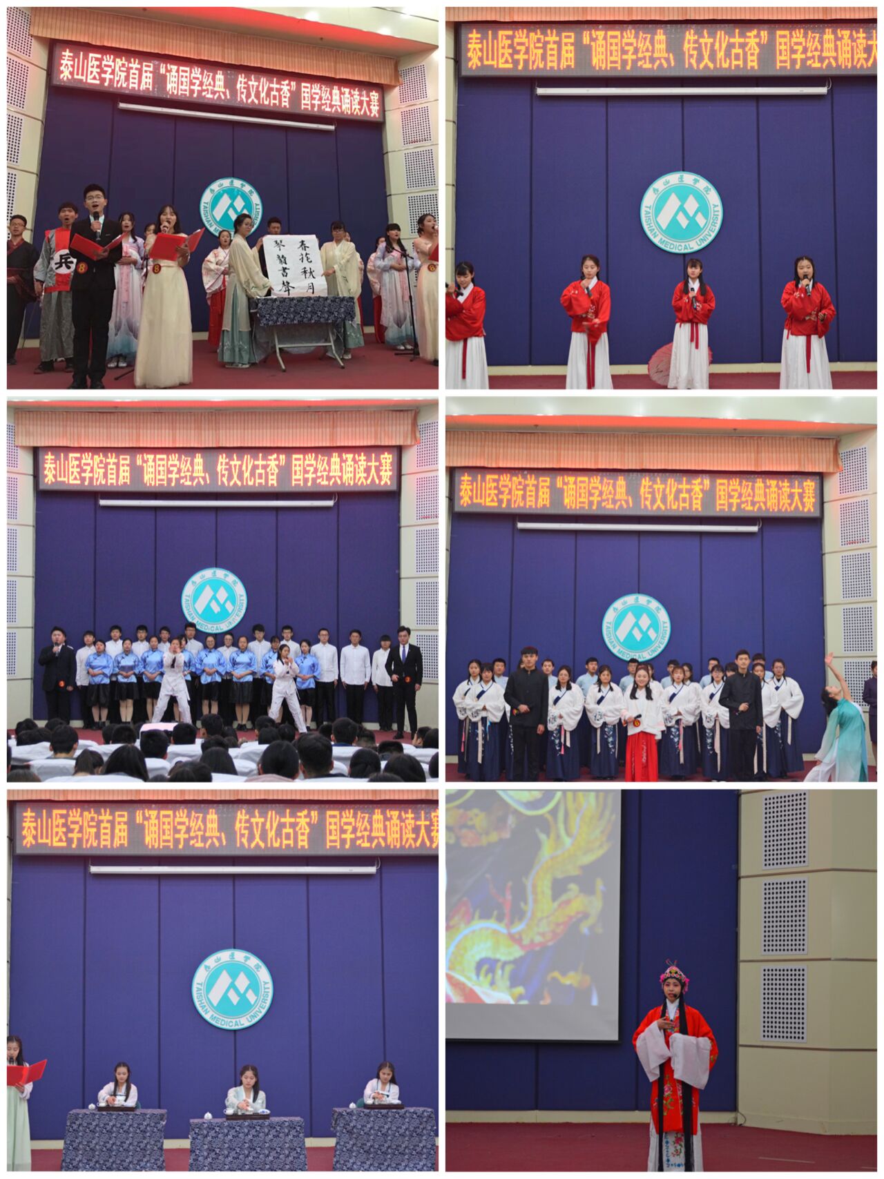 比赛在一段优美的歌舞表演《千年游》中拉开序幕。九组代表队将诵读、舞蹈、书法融于一体,朗诵了包括《少年中国说》、《诗意中国》、《国学·悟道·人生》等在内的国学经典作品。比赛中,选手们精神饱满,诵读作品恢恢有余、气势恢宏,展现了中华儿女的满腔热血,把中华经典的内涵淋漓尽致地表现了出来。独具古韵的京剧选段和茶艺表演,将国学经典文化与内容相互融合,缓和了紧张的比赛气氛,也给现场评委、观众带来了一场精彩纷呈的视听盛宴。经过激烈的角逐,球王会代表队荣获本次大赛一等奖,医药管理公司和口腔医公司代表队获得二等奖,护理公司、药公司和生命科学公司代表队获得三等奖,化学与制药工程公司、放射公司和第二临床医公司代表队获得优秀组织奖。