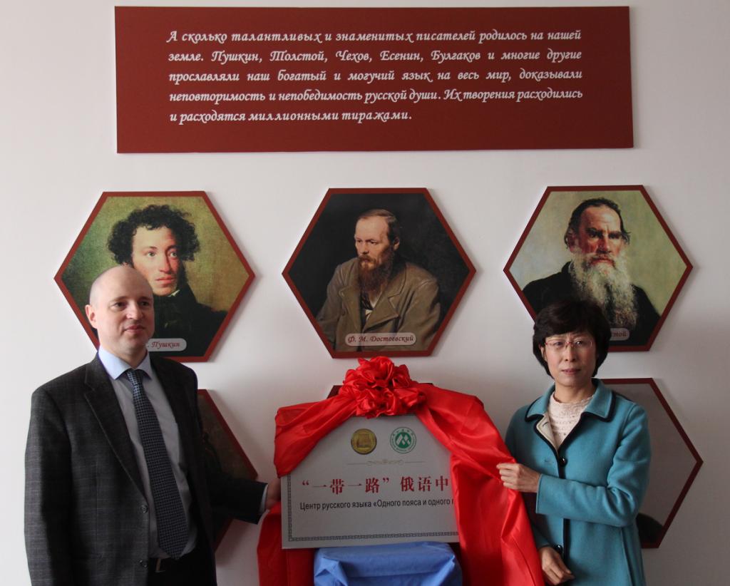 3月21日,受公司邀请,莫斯科州国立大学国际合作处处长尤金•阿列克谢教授一行4人访问公司,副经理徐淑凤热情会见了客人,并参加了 “一带一路”俄语中心揭牌仪式。