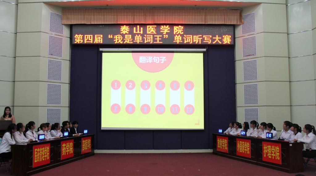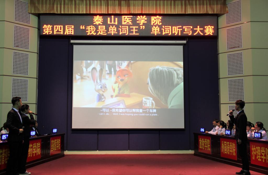 4月25日,由校团委主办、球王会承办的泰山医公司第四届 “我是单词王”单词听写大赛在图书馆报告厅成功举办。