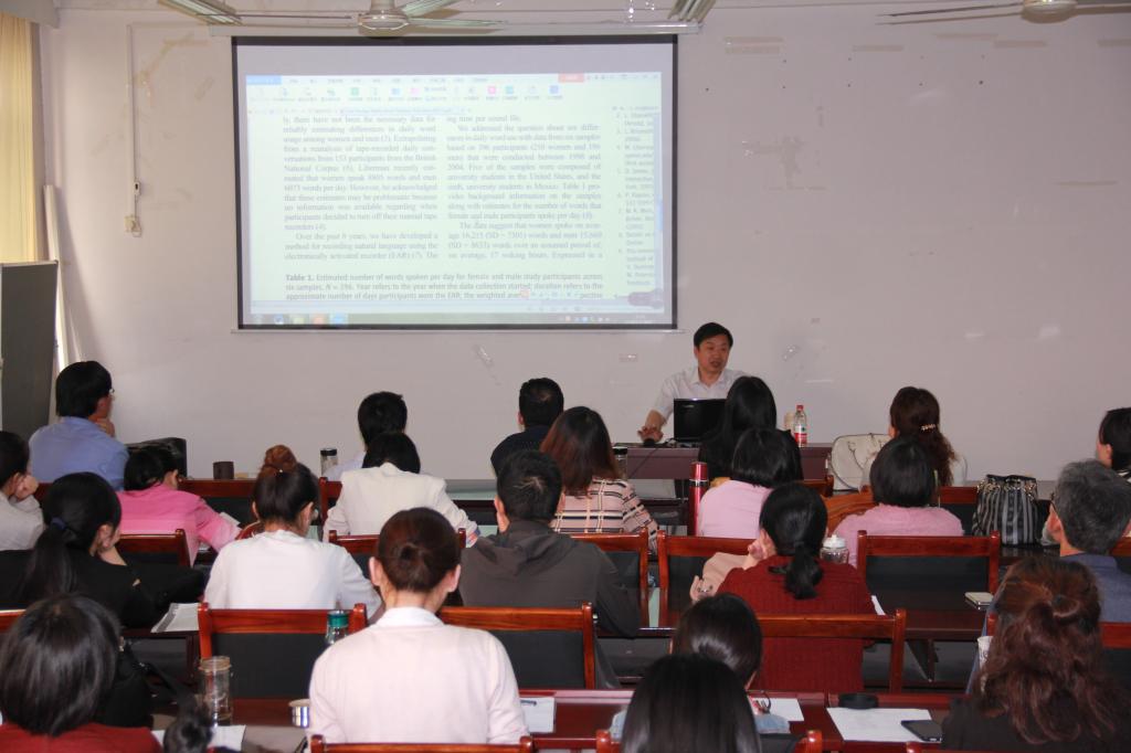 报告会上,石运章教授结合个人丰富的学术经验,以国家社科基金中标课题为例,从课题选题、学术规范、学术创新等方面向大家阐述了外语学科科研方法的动力、方法和路径。指出外语教师进行科研选题,要做到“时代话题”、“现实问题”和“学术命题”三题合一,必须以教学中的现实问题为着眼点,与社会接轨,与国家发展战略相契合。同时,石教授还强调在大数据时代背景下,科研还要借助新技术、用新材料、从新的角度研究问题,以增强研究的创新性。石教授幽默风趣的语言和严谨务实的科研态度给与会教师留下了深刻印象。本次学术报告对于开阔外语教师的科研思路、探索新的研究领域、提高科研能力起到了很大的促进作用。