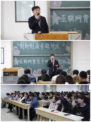 讲座中,李总以“互联网背景下的创新思维”为主题,围绕“什么是创新创业教育”、“为什么要创新创业”、“如何创新创业”和“关于创新创业的几点建议”四个方面为同学们细致地分享了实用丰富的经验。李总用生动的语言、鲜明的事例,同学们分享了自己的创新创业史。他谈到,在自己的奋斗过程中,坚持、发展和创新是必不可少的三要素。他以天成发展的三个阶段为例教导同学们在未来的职业生涯中克服传统思维,运用创新思维,不断地提升自己,实现自己的职业梦想。最后,李总希望同学们要善于学会寻找自己的优势和劣势,对未来方向有一定的规划,有针对性的提高自己的职业素养,让创业梦想成为现实。
