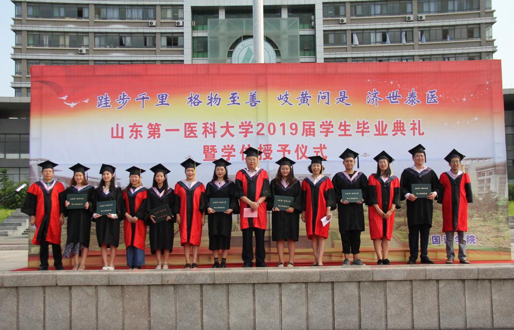 随后,李文书记宣读了《泰山医公司关于授予2019届毕业生学位的决定》,公司领导依次为公司232名本科生举行了学士学位授予仪式,给他们颁发了学位证书,并合影留念。
