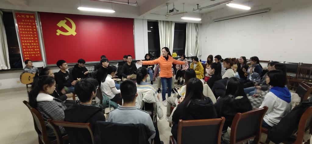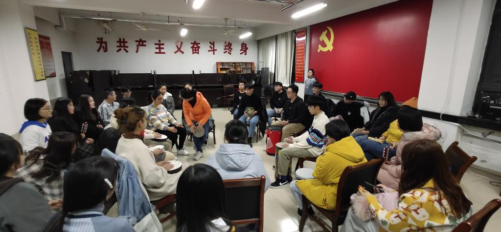 “鼓圈”活动是音乐团体心理辅导的一种形式,参与者能够在体验中获得心理成长。活动开始不久,同学们就逐渐找到了团体的节奏,敲击出和谐的旋律。之后,在宋雪老师的引导下,同学们开始以创造性的方式进行演奏,在统一的节奏中表现出自己的独特性。活动过程中,同学们通过非言语的方式感受到了团体成员之间的联结与配合,在鼓声的共振中体验到了聆听与表达。同学们在鼓圈活动里感受着打击乐的乐趣,体验着合作带来的快乐,激发起创作的灵感,强化肢体协调与思考力的同时,也释放着情绪与压力,收获了欢乐和成长。