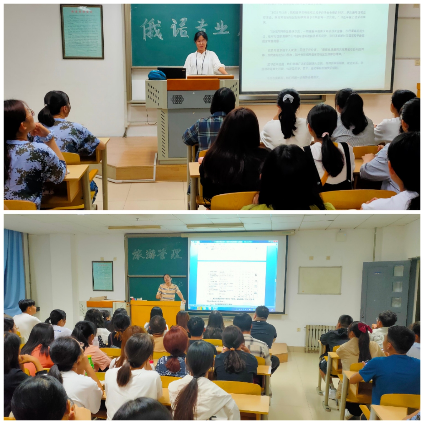 俄语系主任苑东彬从中俄关系、专业概况、课程体系三个方面向新生详细全面地介绍了俄语专业概况,并分享了历届优秀毕业生的就业以及出国经历,坚定了同学们学习俄语的热情与信心。
