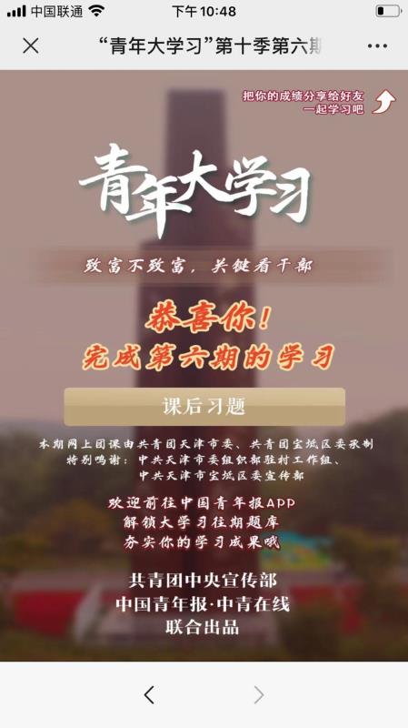 全院教职工积极参与并圆满完成了本次活动, “青年大学习”是将学习宣传贯彻习近平新时代中国特色社会主义思想和党的十九届五中全会精神持续引向深入的重要举措。通过本次大学习活动,将推动党的创新理论深入人心,引导广大师生“不忘初心、牢记使命”,切实增强“四个意识”、树立“四个自信”,坚定不移听党话、跟党走,为青年成长成才搭建平台。