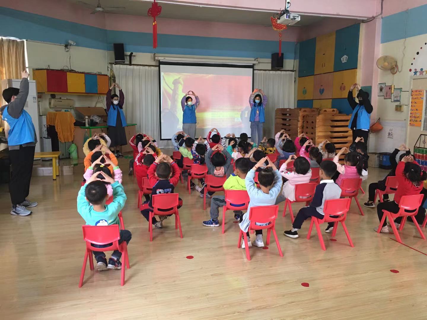 活动在奥尔夫热身游戏《丢手绢》中拉开序幕,小朋友们热情高涨,积极投入,在轻松的趣味活动中,孩子们认识并学会简单地演奏沙锤、鼓、摇铃、手铃、响板、三角铁等各种打击乐器。游戏结束后,志愿者教小朋友们手指操表演唱《我爱北京天安门》,孩子们在志愿者的引领下合着优美的音乐节拍,整齐的舞动着小手。随后邀请小朋友们上台展示,并送给他们图画本作为奖励 。整个活动现场一片欢声笑语,大家其乐融融,十分融洽,得到了幼儿园老师们的认可。
