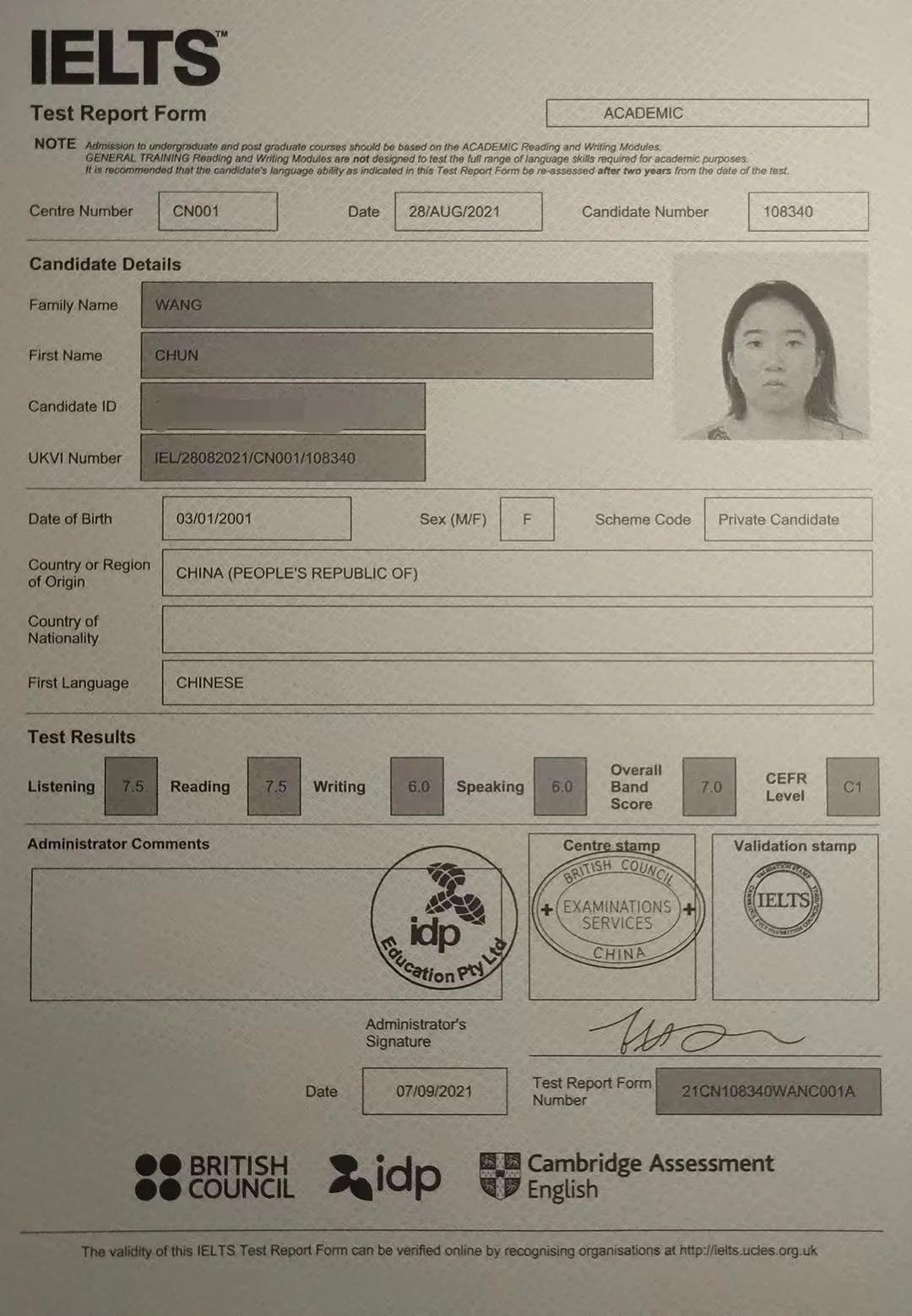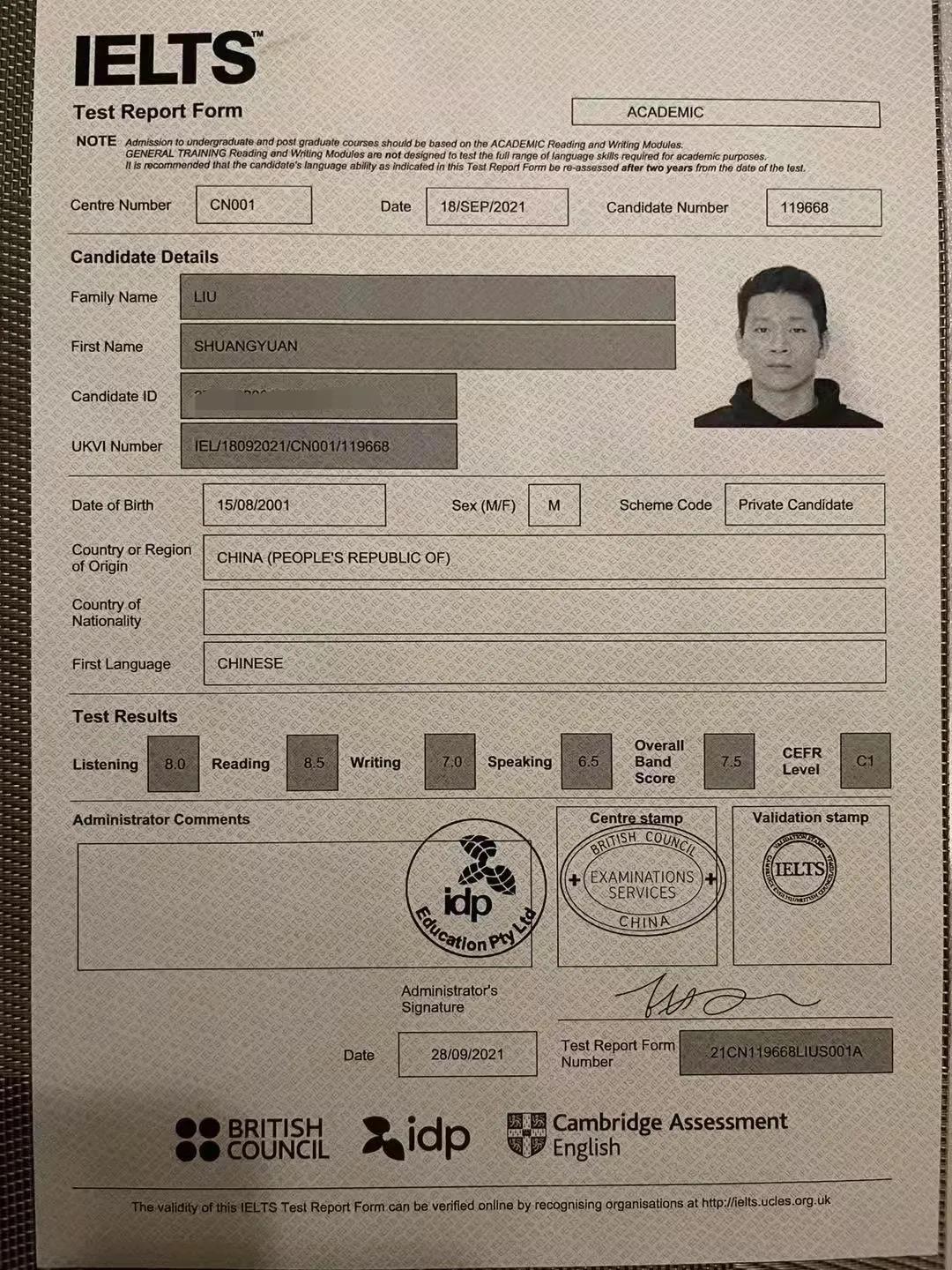 因疫情影响,雅思报名和考试受到很大冲击,2019级医学卓越班在完成既定的两年英语学习计划后,仅有王淳(7.0分)、刘双元(7.5分)、郑培贤(6.5分)、刘昊宇(7.0分)四名同学成功报名雅思考试并取得骄人的成绩。