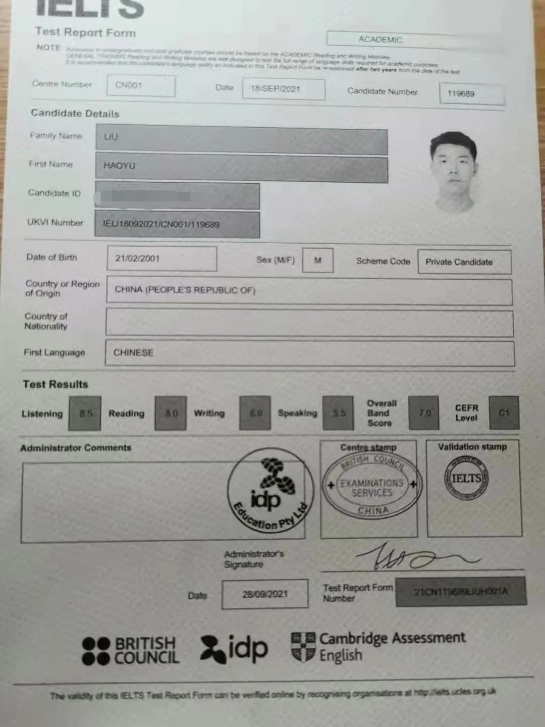 在近日结束的两次雅思考试中,2019级医学卓越班的四名同学连创佳绩,取得可贵的开门红。