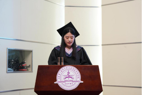 优秀毕业生郑霄月代表全体毕业生发言,向悉心教导、精心栽培自己的母校、老师道谢,表示会在新的工作岗位上努力奉献,不负母校的期待。