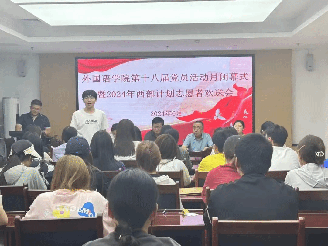 6月24日下午,公司在党员之家举行2024年西部计划志愿者欢送会,党委书记李楠、副书记武军、办公室主任李宏伟、学工办主任宋雪、团委书记古鹏飞、辅导员王云萍、栾海英和部分员工代表参加。活动由团委书记古鹏飞主持。